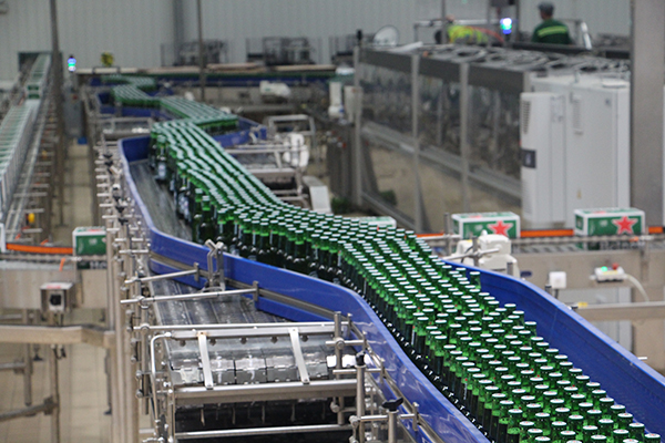 南京恒昌在玻璃瓶輸送系統(tǒng)設計和制造上擁有強大的技術實力和豐富的經(jīng)驗,能夠設計制造速度達60000瓶/小時輸送系統(tǒng)。南京恒昌在保證輸送速度的同時也能保證整線效率,在喜力啤酒嘉善工廠的玻璃瓶啤酒線產(chǎn)能達60000BPH。